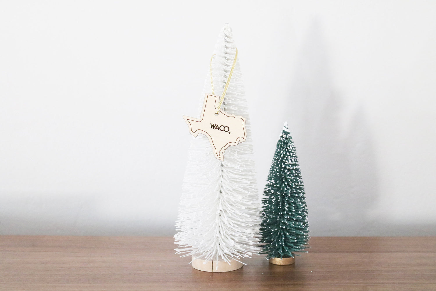 + One laser engraved wood ornament with gold ribbon