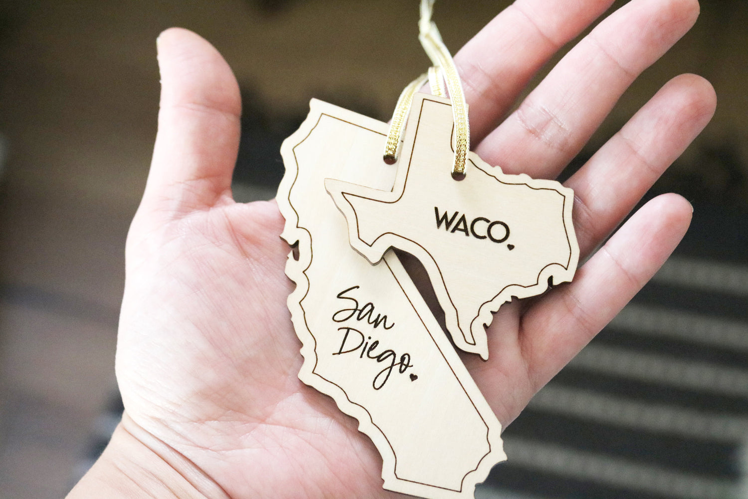 custom mini city and state wood christmas ornament
