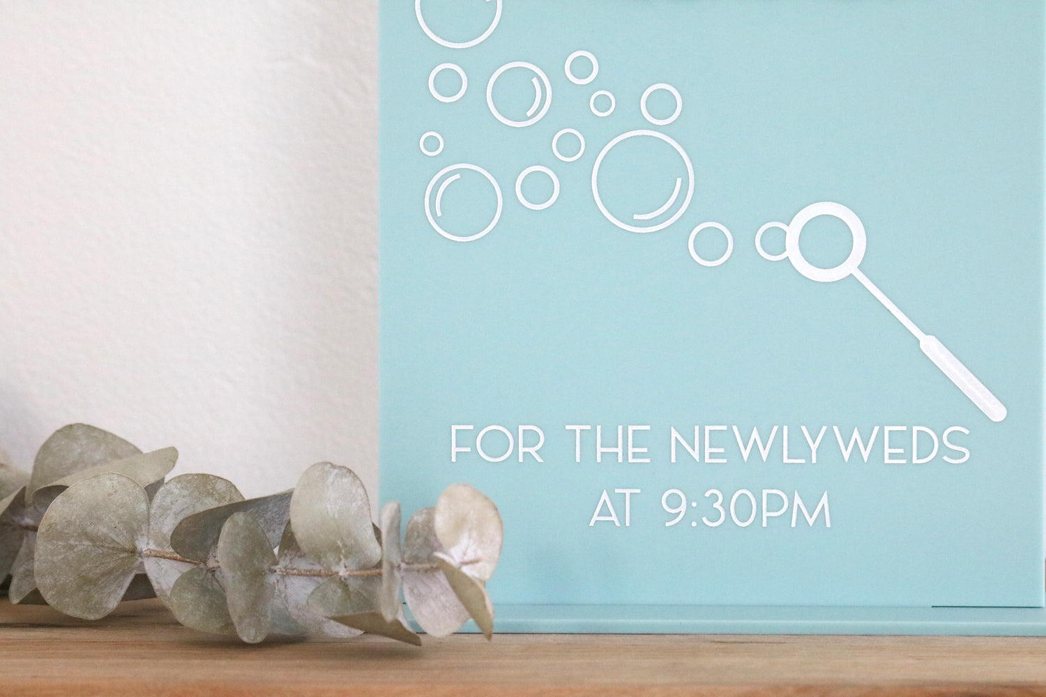 acrylic arch bubble send off sign | bubble sign | newlyweds | ceremony | wedding sign | wedding decor | wedding reception | acrylic