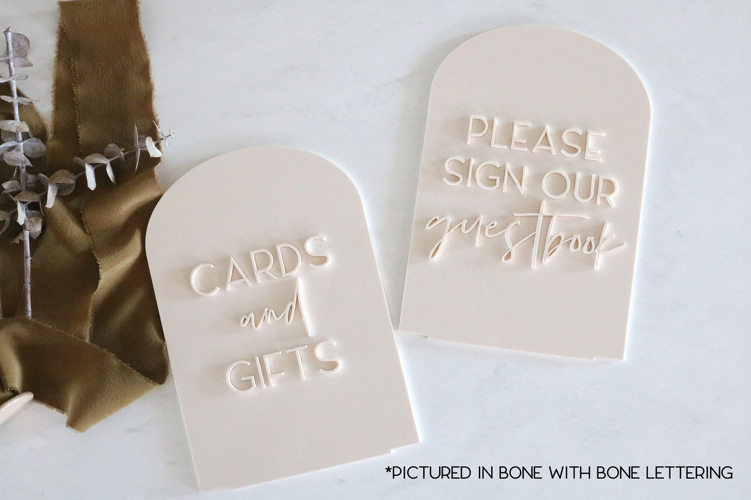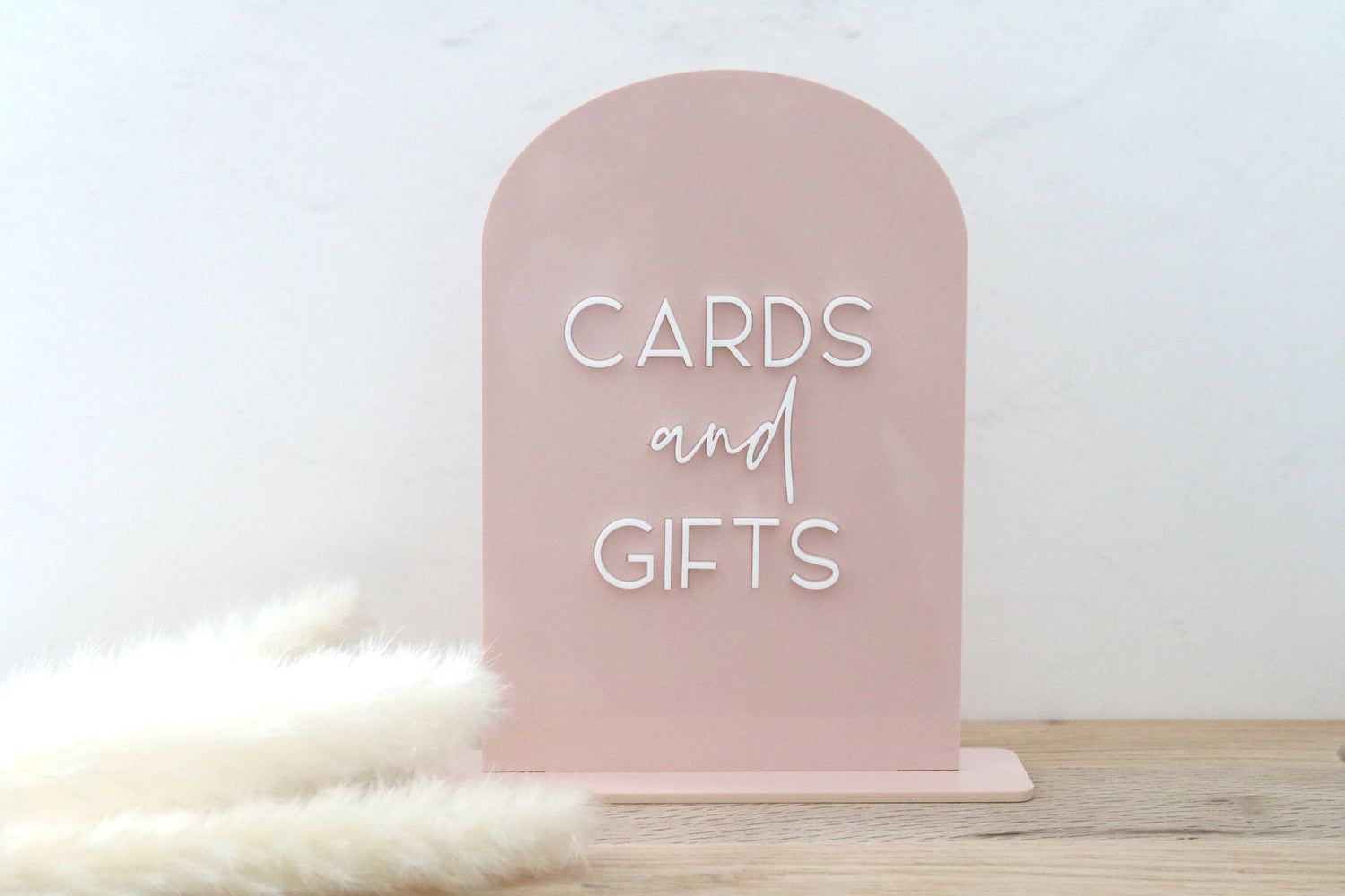 acrylic arch cards and gifts sign | acrylic wedding sign | wedding decor | arched | wedding reception | acrylic | gift table | card table