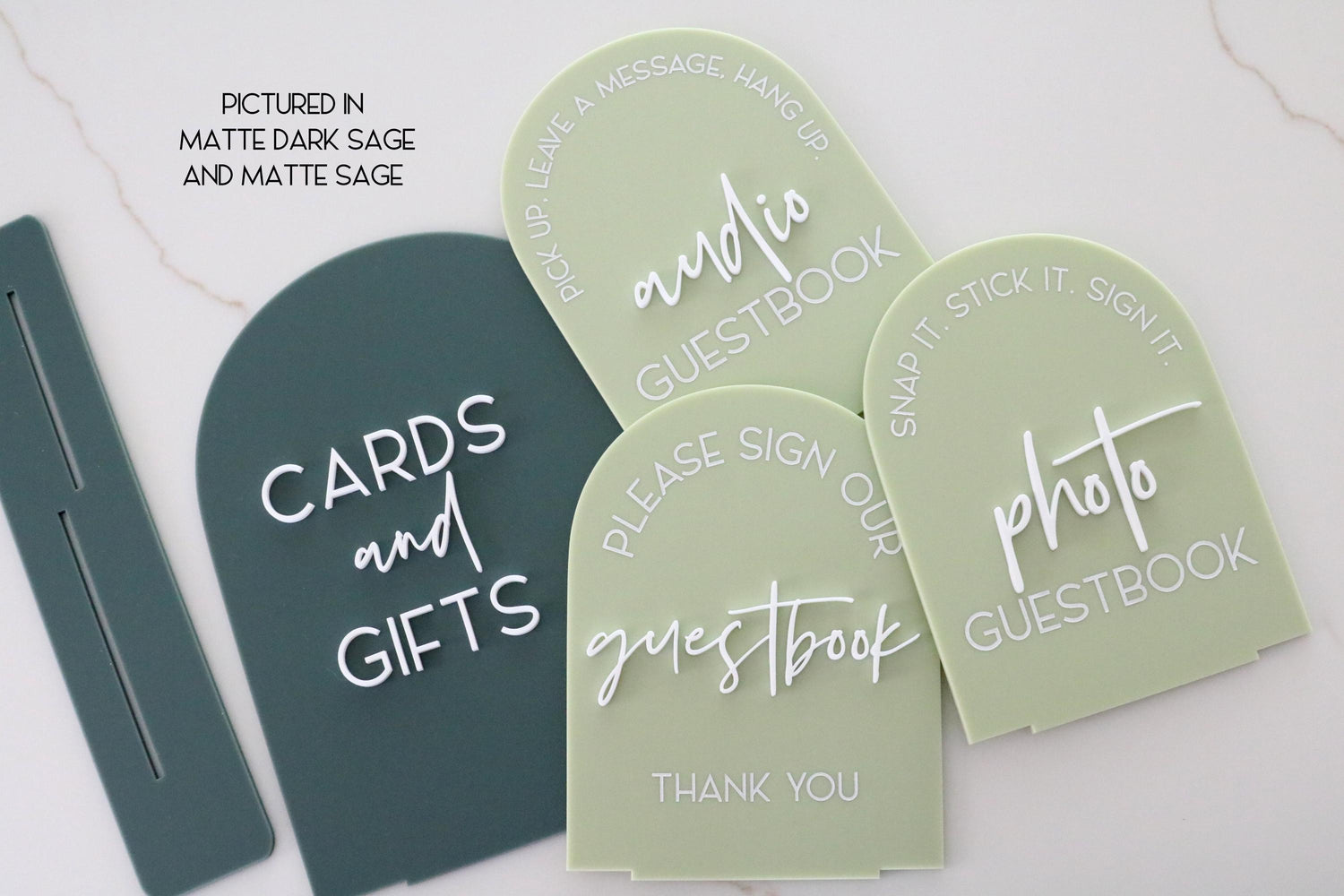 acrylic arch duo cards and gifts guestbook sign | double acrylic wedding sign | wedding decor | wedding reception | table | please sign our