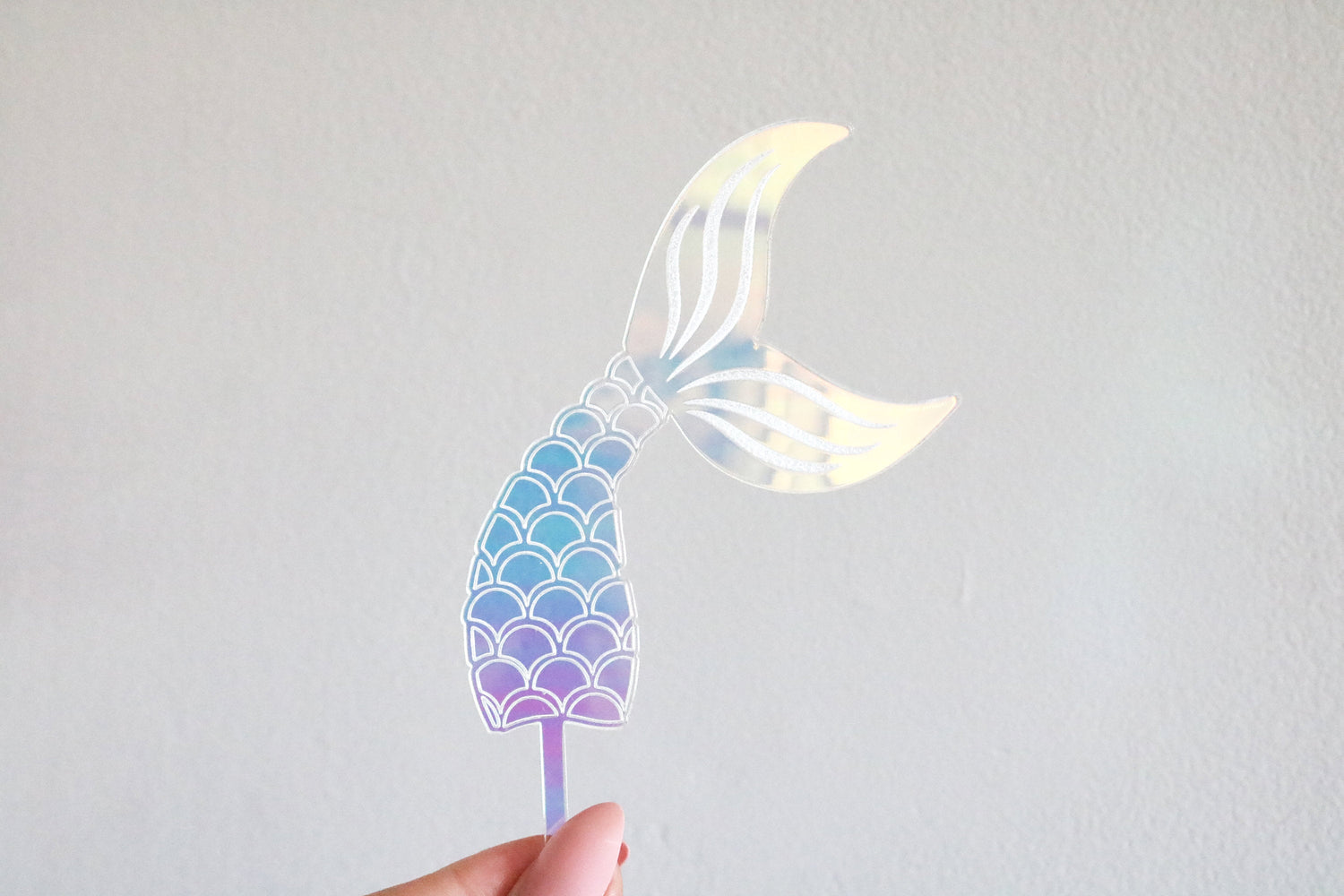 colorful iridescent mermaid tail acrylic cake or cupcake topper