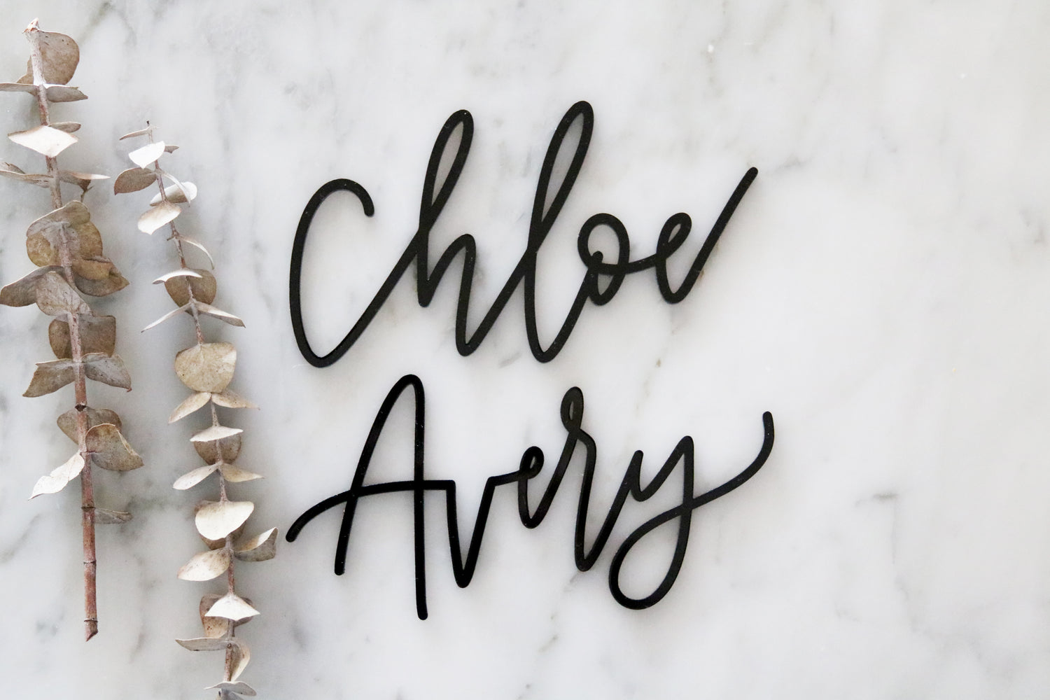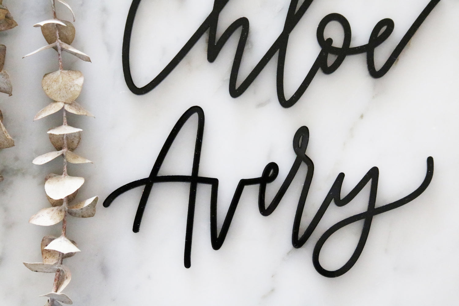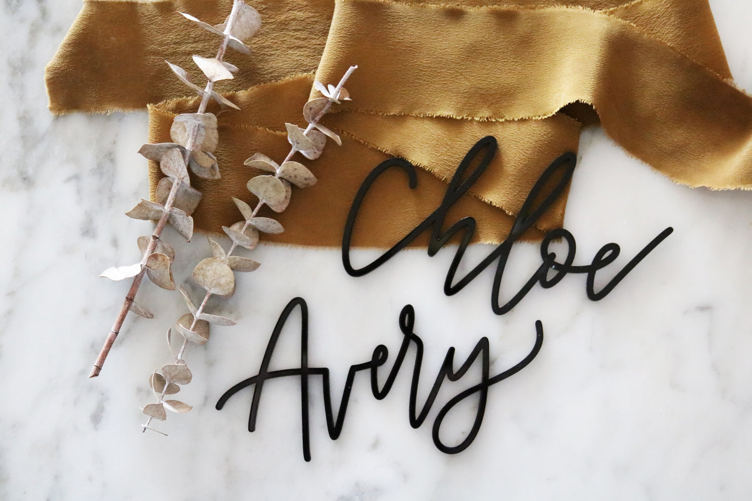 custom hand lettered calligraphy place setting name | acrylic or wood