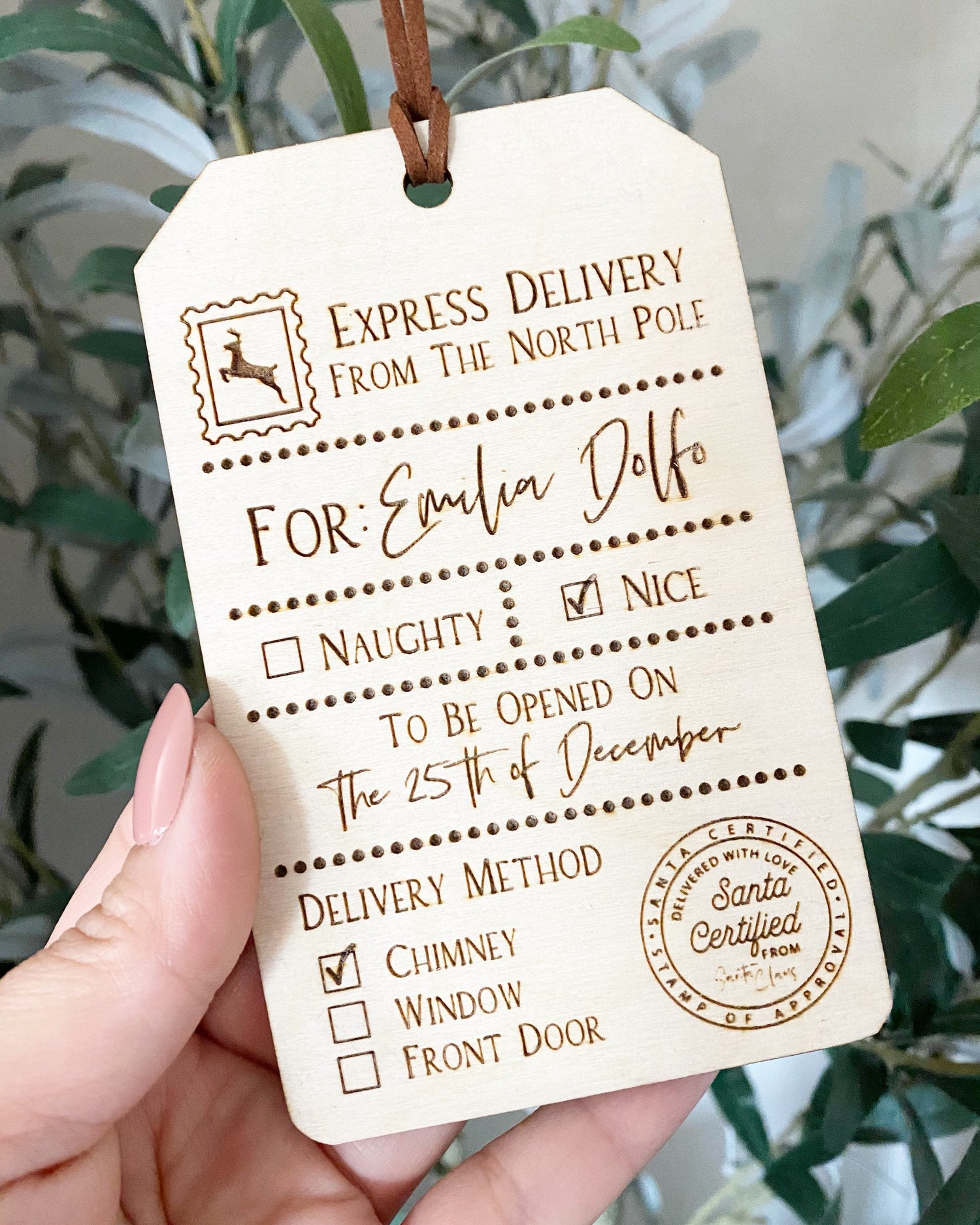 + One laser engraved wood gift tag (approx. 3" x 5")