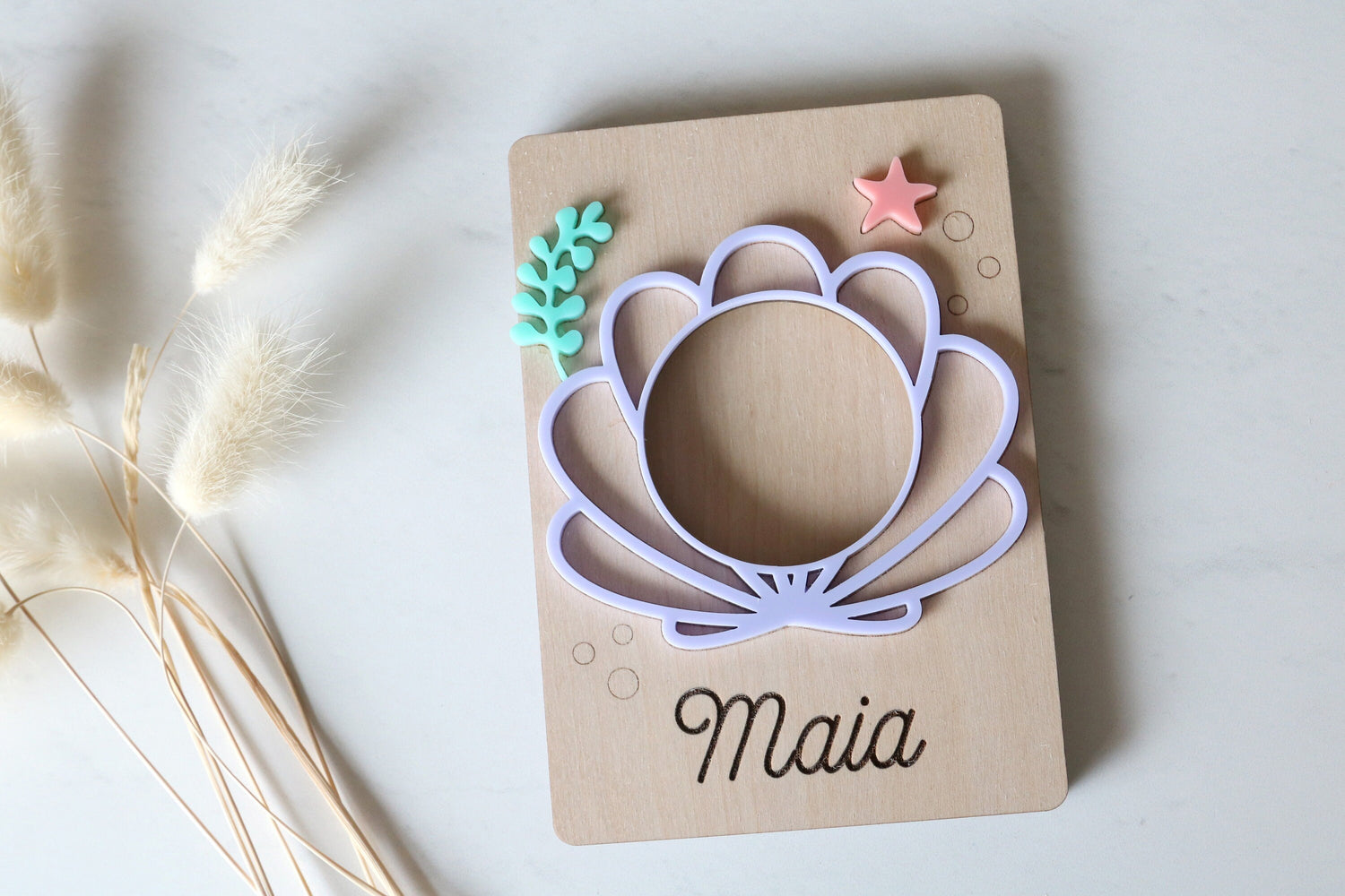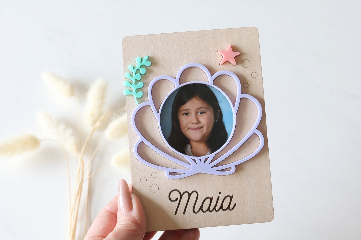 + These frames will fit a standard wallet size phot (2.5" x 3.5"). The circle cutout is 2" round, so you may need to trim your photo to get the faces to line up with the circle cutout
