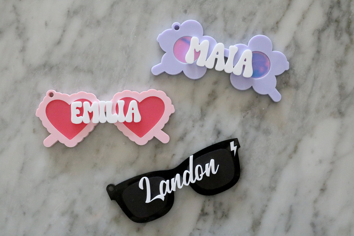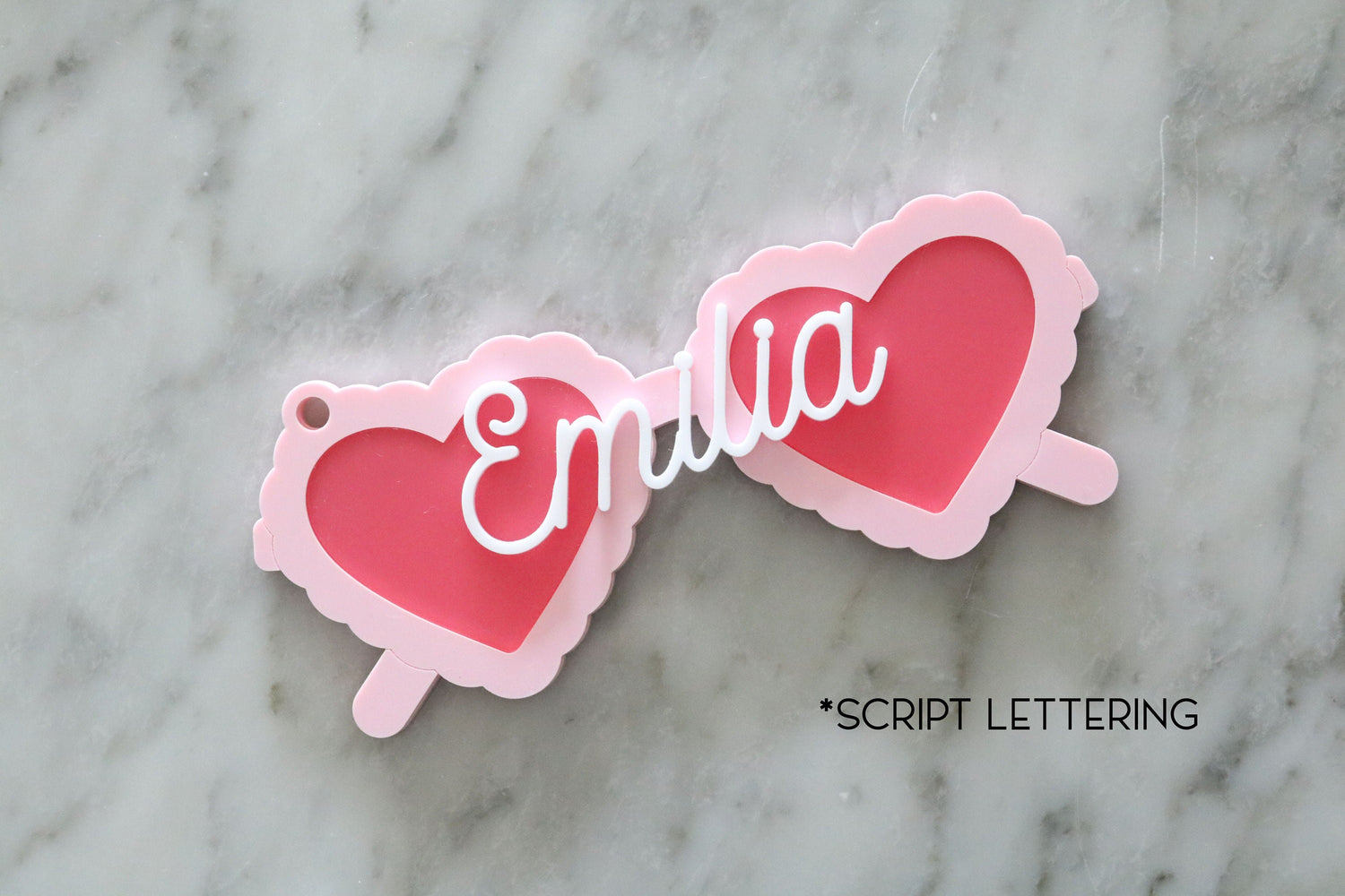custom scalloped heart sunglasses acrylic basket name tag | valentines day | heart sunglasses | easter basket | name | holiday | basket tag