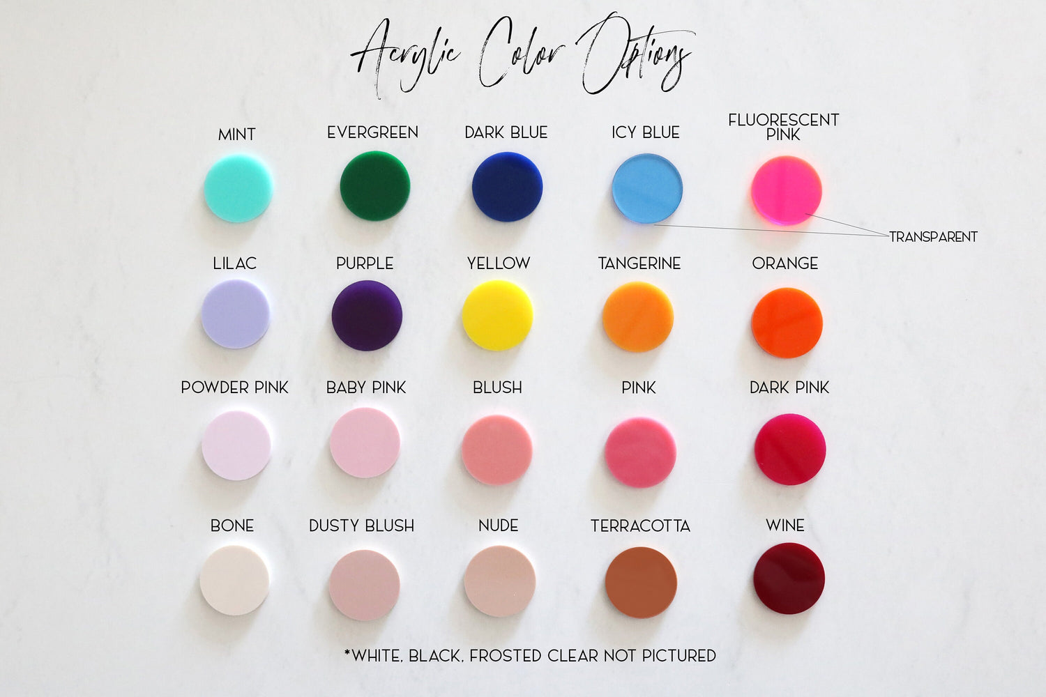 + Choose your acrylic color from the dropdown menu. *Pictured in Terracotta.