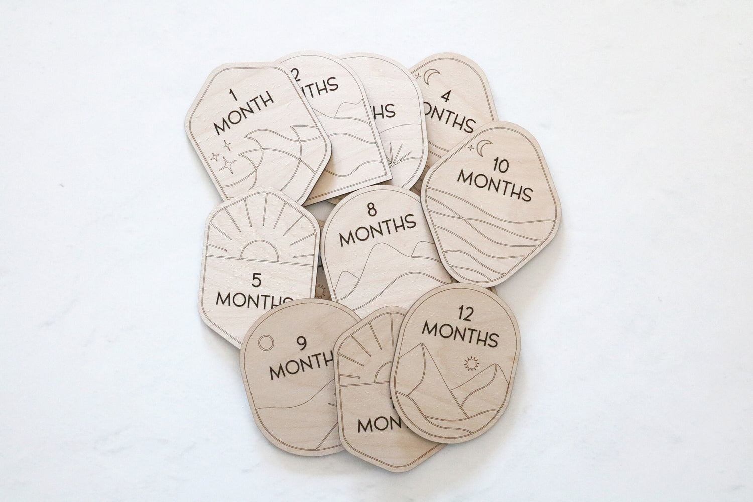 set of wood boho baby age monthly milestone signs