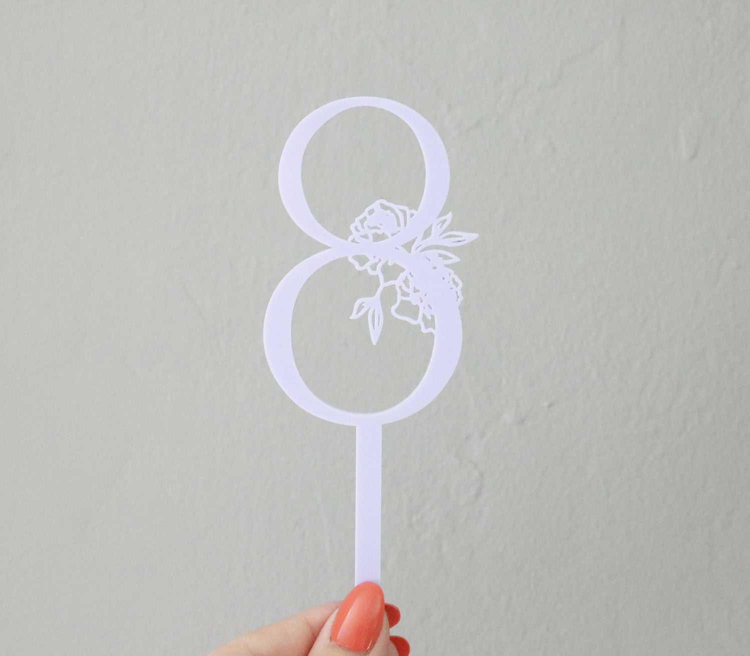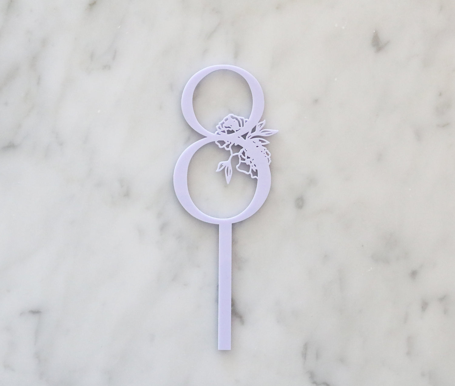 single number floral acrylic cake topper | CHOOSE YOUR NUMBER + COLOR